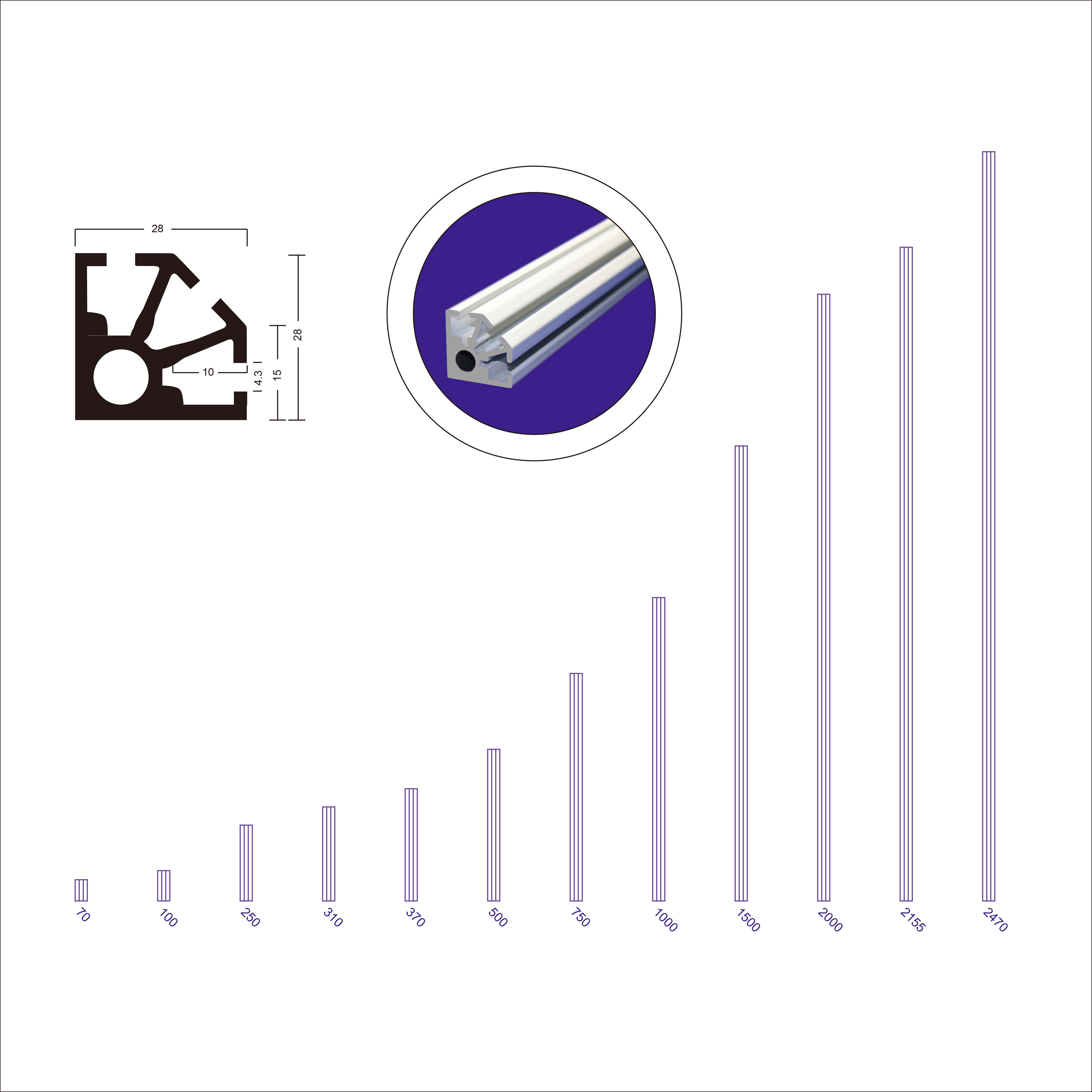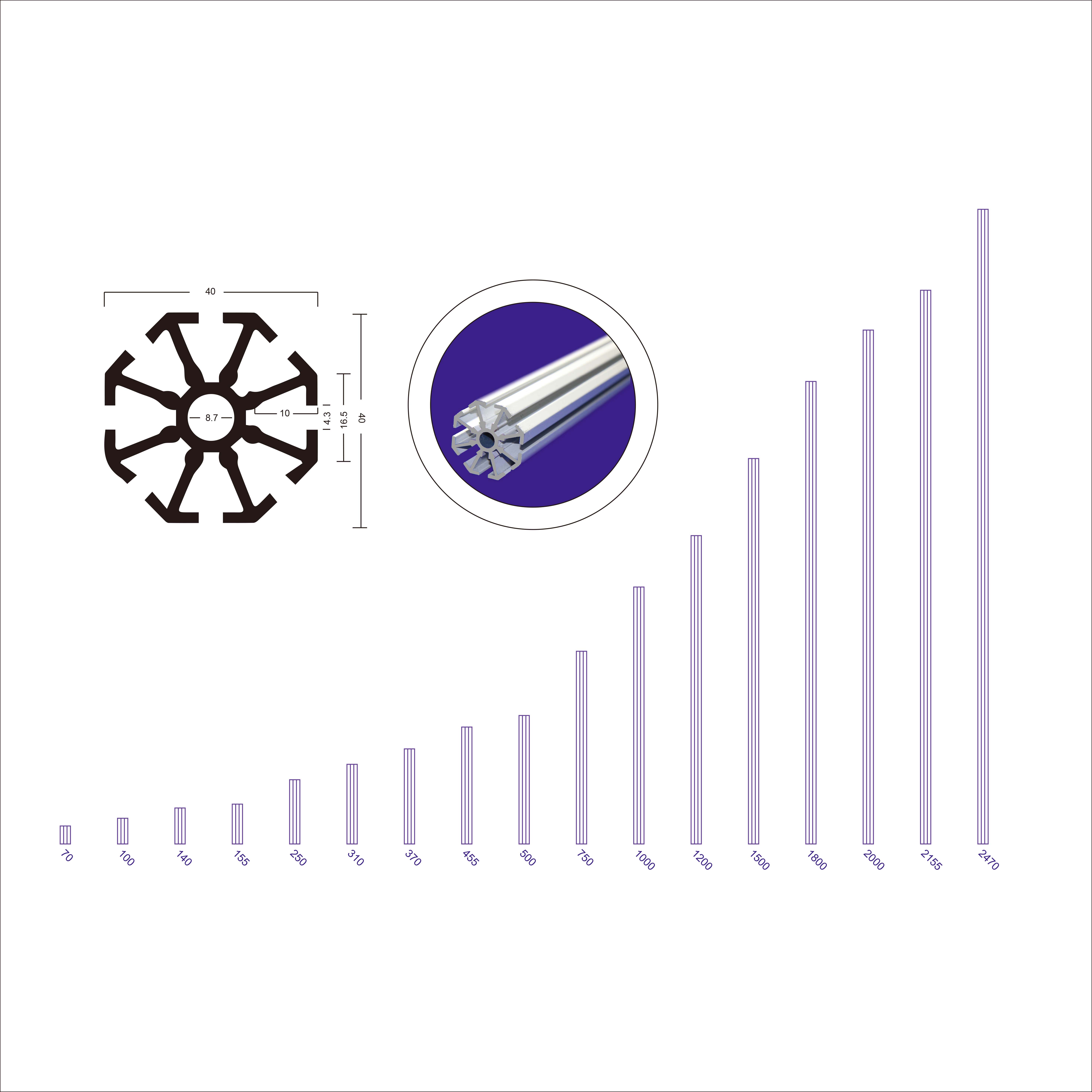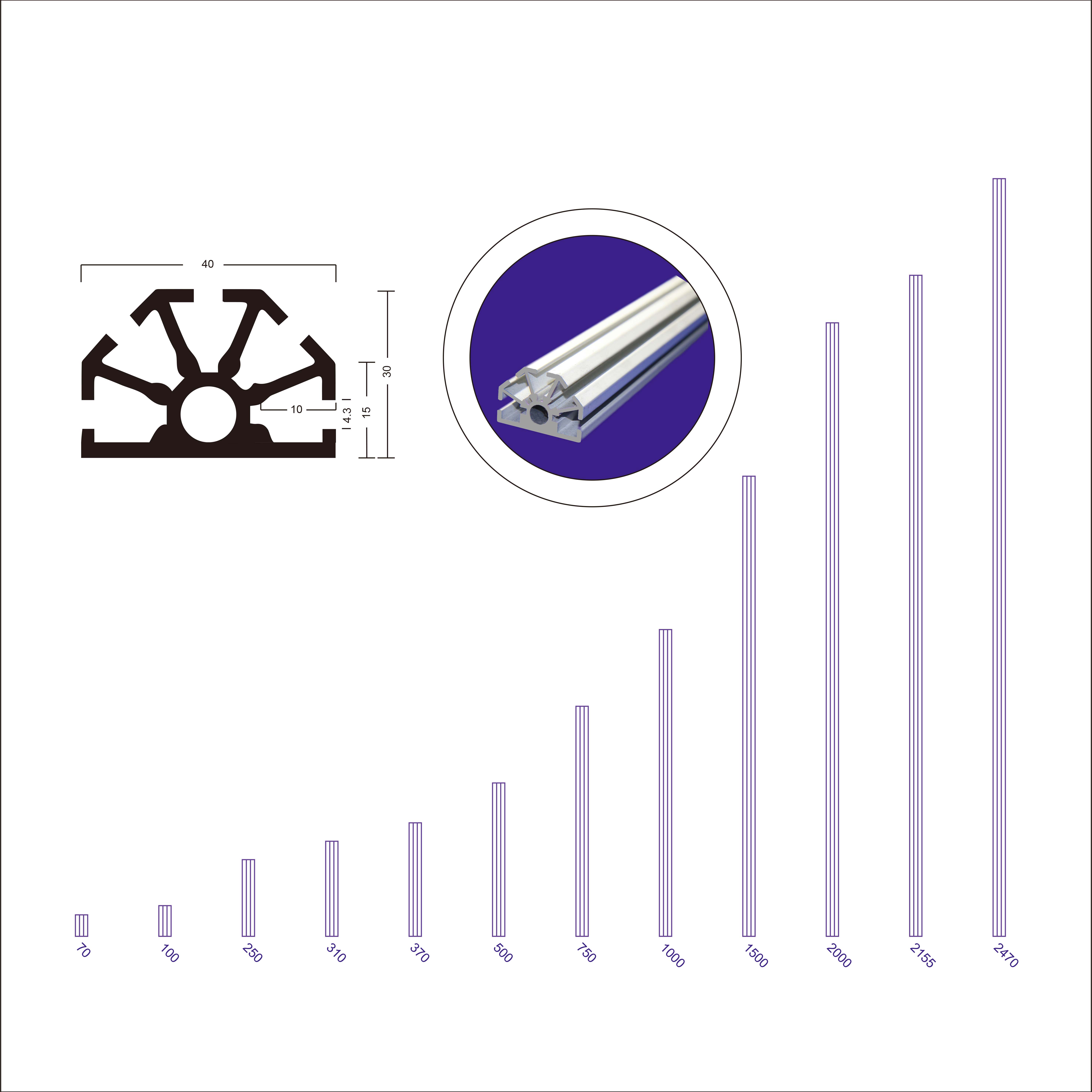 尺寸 - 16mm(T) x 40mm(H) x 455mm/ 660mm/ 950mm (L)