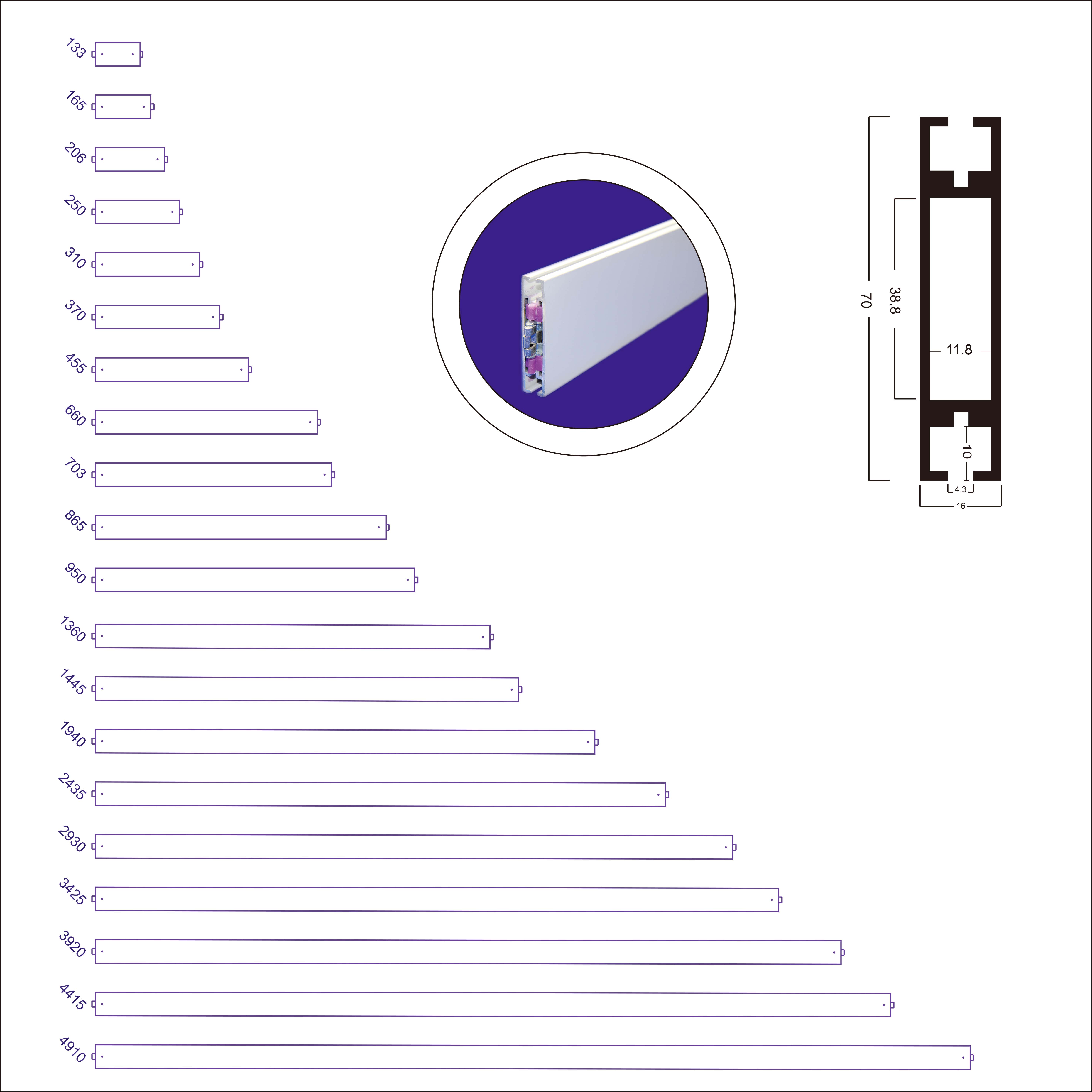 尺寸 - 16mm(T) x 38mm(H) x 950mm(L)
